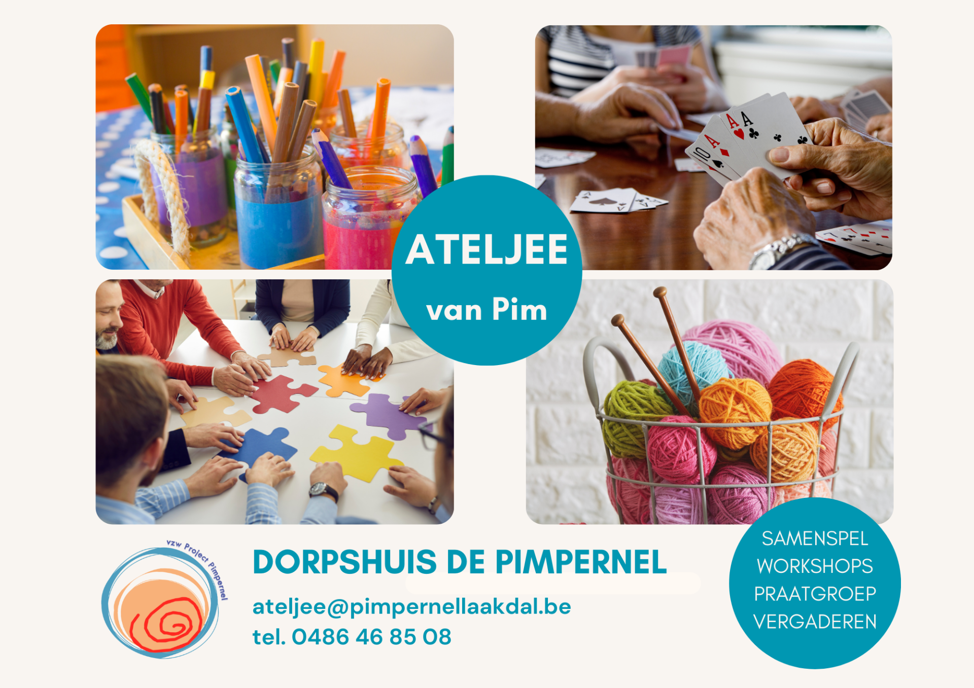 Vragen stellen, een voorstel doen of inschrijven voor een activiteit gebeurt allemaal via de mailbox van ateljee@pimpernellaakdal.be. Zo krijg je het snelst een antwoord!
