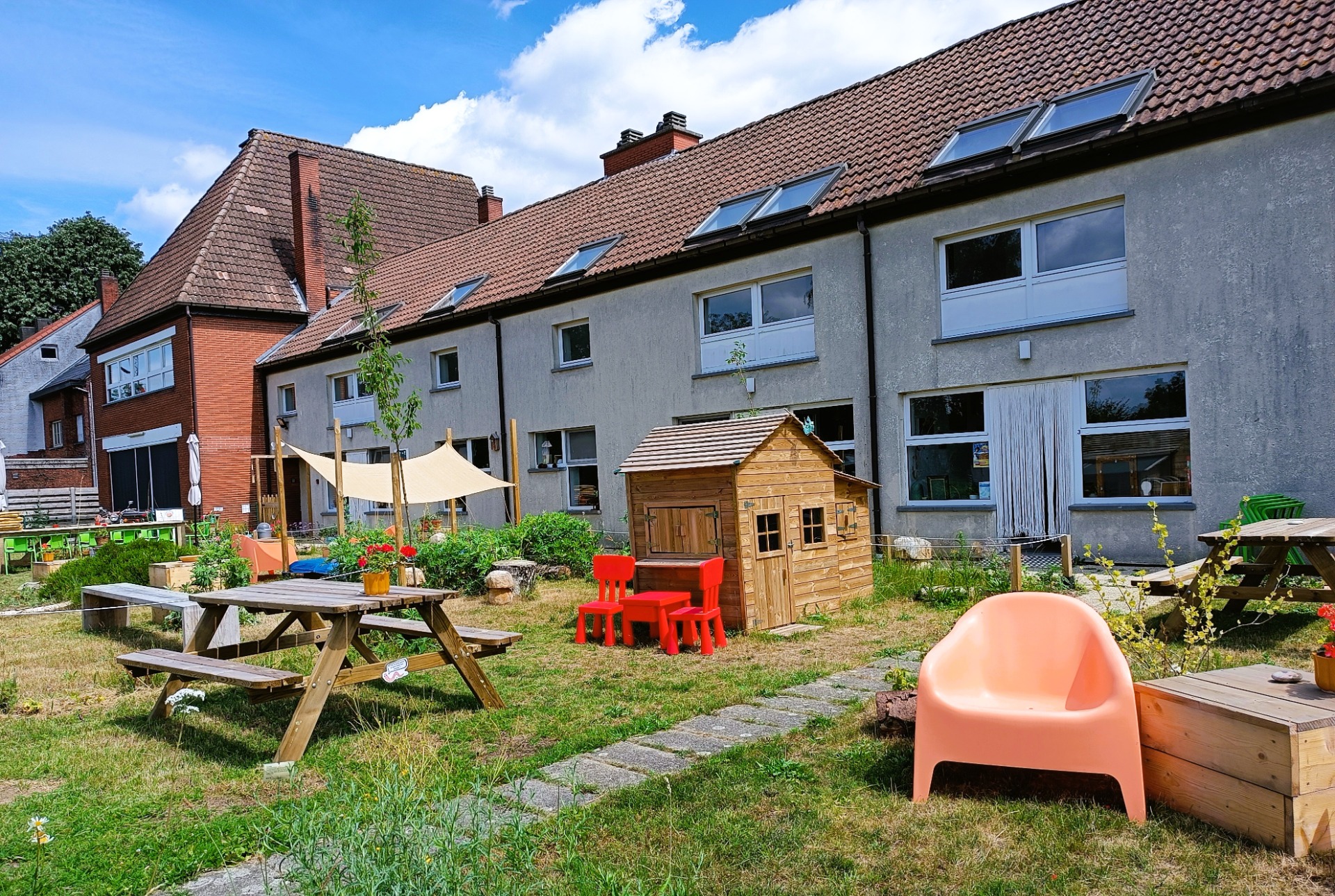 We hebben een plek gemaakt met tweedehandsspullen, die huiselijk en comfortabel aanvoelt, waar je kan en mag 'landen'. Een huis met een keuken, koffiekamer, leeshoek, speelhoek, praatkamer, crea-ruimte, winkel, tuin en zo veel meer!