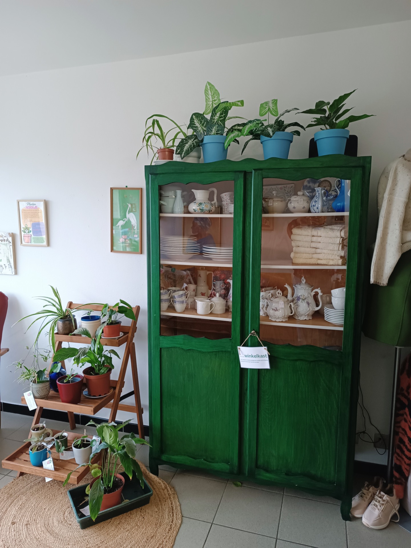 maar ook een winkelkast, plantenverkoop en creatieve dingen-verkoop.